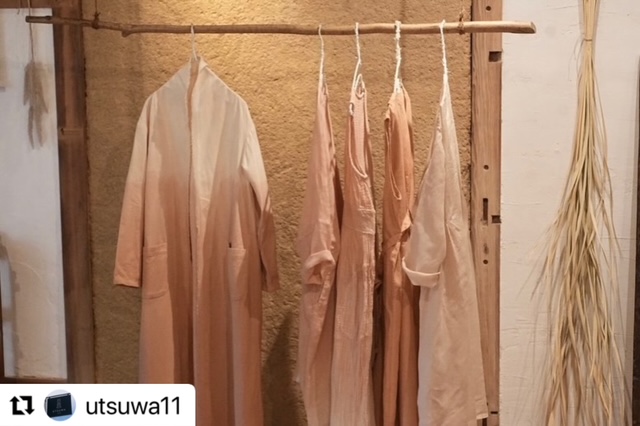柔らかな色の草木染めのピンク色のお洋服やストール
